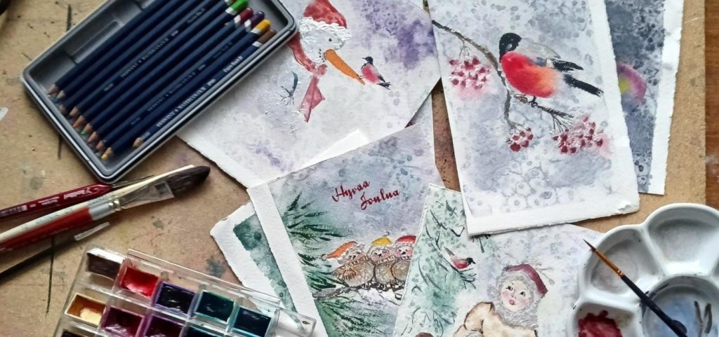 Kokoonnumme viimeistä kertaa tämän vuoden puolella yhteiseen maalaustapahtumaan. Näin joulun alla voisimme maalata talvisia/jouluisia aiheita vaikka kortteihin tai voit tietysti maalata ”ihan mitä huvittaa”.